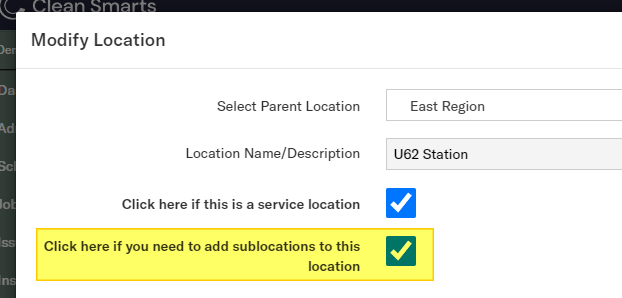 - Make sure that the checkbox marked "Click here if you need to add sublocations to this location" is marked.