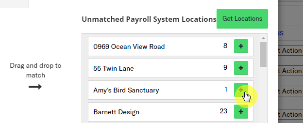3. Click on the "Get Locations" button in the top-right. This will refresh the list of customer accounts currently in your payroll software and list them in the box on the right-hand side.